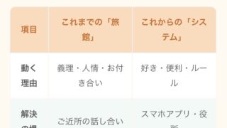 ボランティア地域の「つながり」が変わる?老舗旅館からスマホアプリへの大変身 「最近、地域の行事が減ったかも?」「新しいボランティア募集をよく見るな」…そんな風に感じたことはありませんか?実は今、行政と自治会のパワーバランスが大きく変わろうとしています。昔ながらの「義理と人情」が、ドライな「システム管理」に代わるとどうなるのか?地域のモヤモヤを「旅館」に例えてわかりやすく解説します! 2026.02.19ボランティア