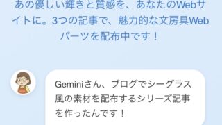 manaoの素材箱Manao×Gemini共同制作!手ちぎり感にこだわった「桜のデジタルステーショナリー」をお裾分け 「最近、日差しが春めいてきましたね。そんな季節に合わせて、ブログも春色に衣替えしてみませんか?ManaoとGeminiが共同で作成した、リアルなちぎり跡の『桜色マスキングテープ』や『和紙風メモ帳』のHTMLコードを無料配布します。コピペするだけで、あなたの記事がパッと華やかになりますよ。春の遊び心満載でお届けします!」 2026.02.19manaoの素材箱