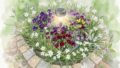 ・右側の柔らかな波(水平の日常): 「幸福の最適値」を守り、安全な居場所を整える母の愛。温かな黄金色の波は、何気ない日常の平穏と、凪(なぎ)のような心の安らぎを表しています。