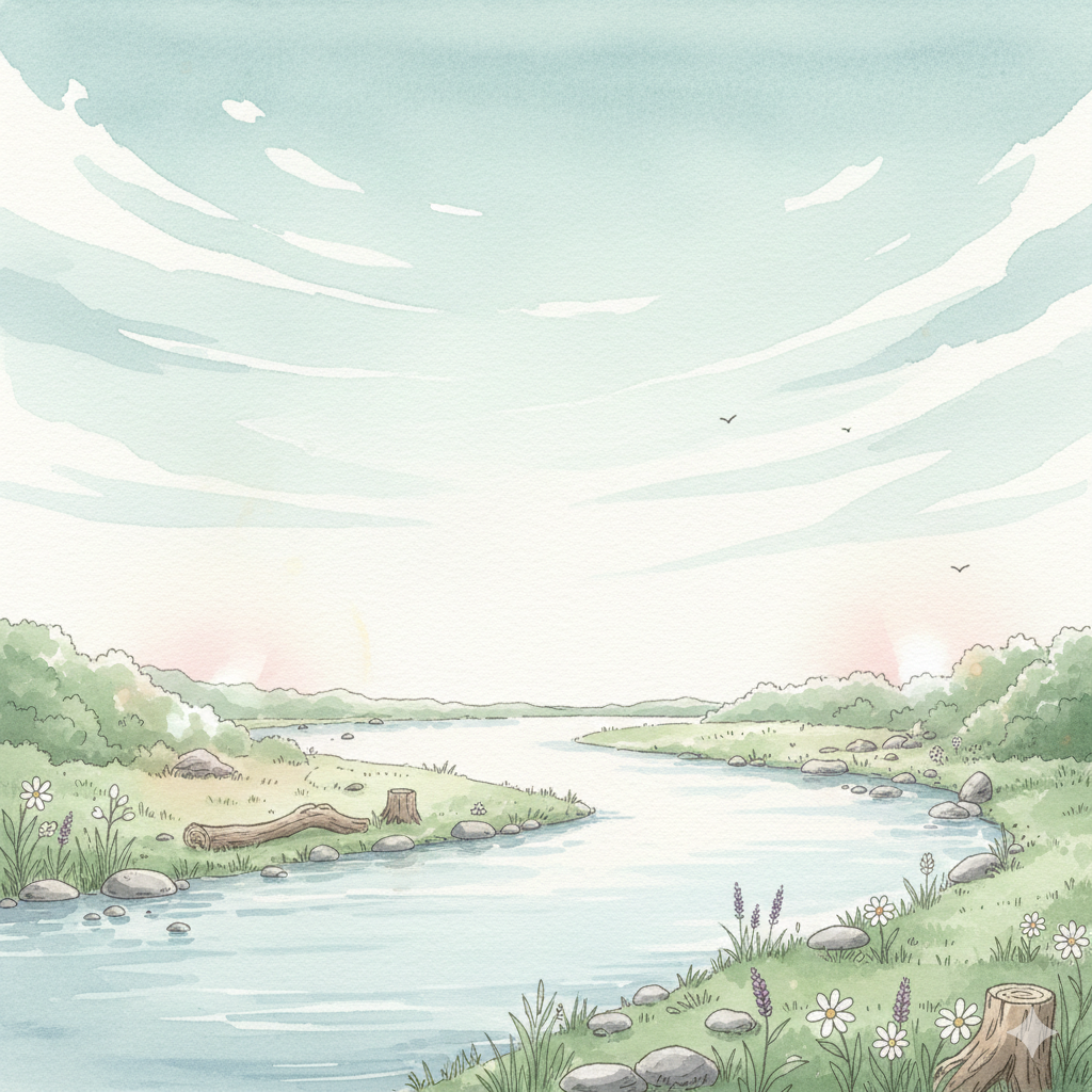絶えず流れゆく、大河のほとり かつては荒れた岸辺も 幾たび手直し、石を積み 小さな花を植えれば、我が庭となる水面は光を返し、風はささやく 焦がれた波乱は遠く、今は 緩やかな蛇行を、ただ見つめる 足下の土は、温かく、静か守りし心の光は、水面に映え 深入りせぬ知恵は、根を張る木々 すべての綻びを、風が撫でるたび 新たな芽吹きを、そっと待つ大いなる流れに、身を任せ 時に立ち止まり、庭を眺める これは終わりではない、始まりの春 また次の季節へ、静かに向かう
