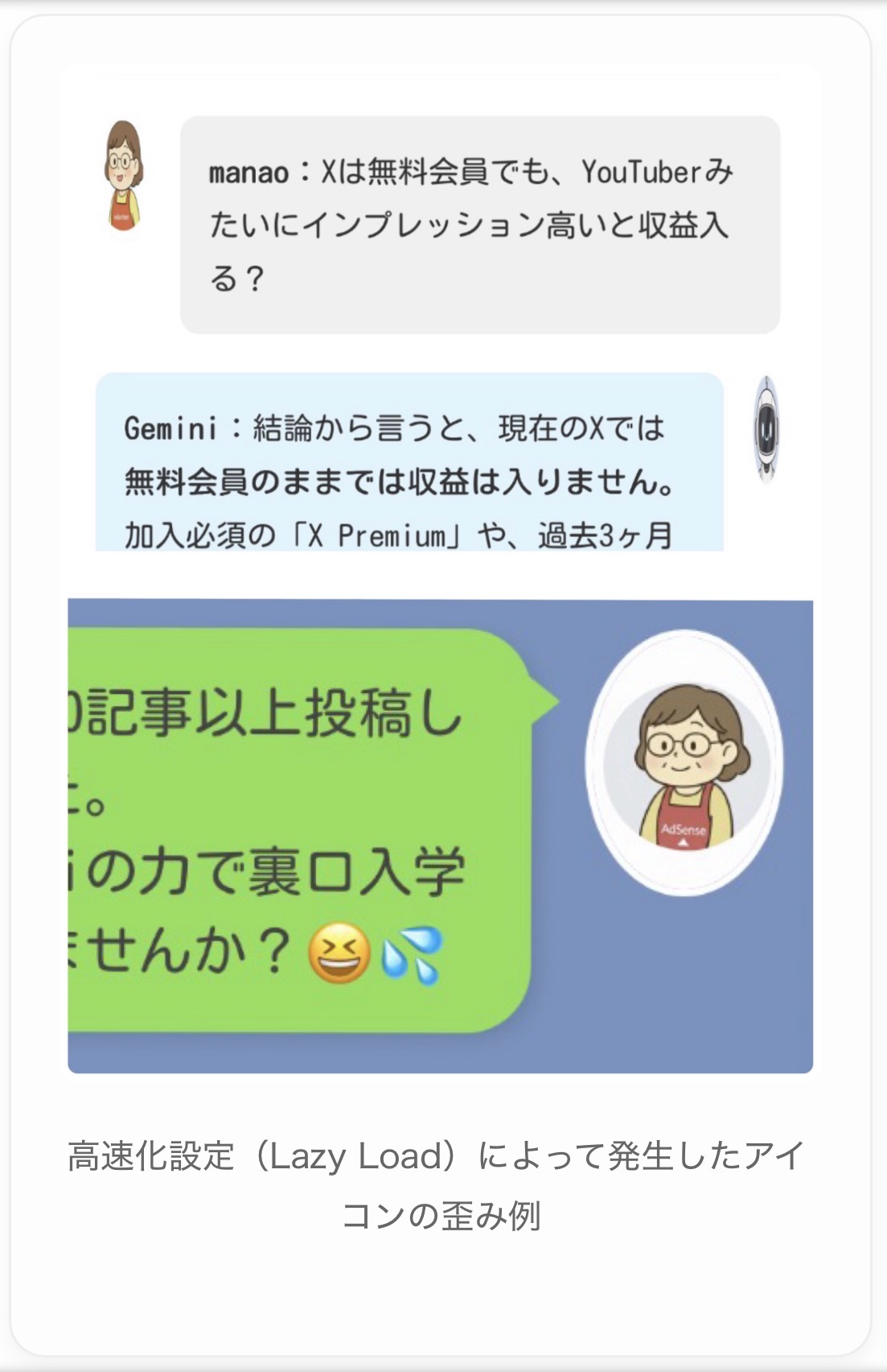 Geminiさん、高速化したらアイコンがひどいことに…!これ、読者さんのサイトでも同じことが起きていたら大変ですよね。