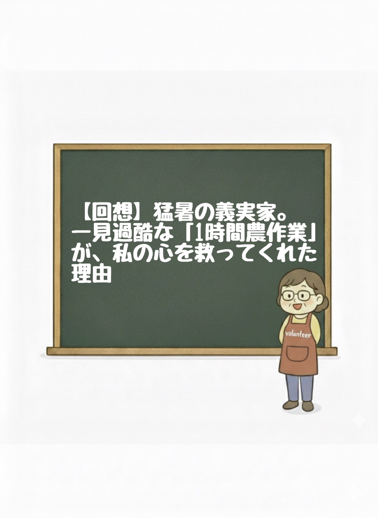 | 1時間の農作業 | 筋肉・汗・五感 | 暑さ・物理的な疲労 | 悩む暇をなくす「脳のリセット」 |