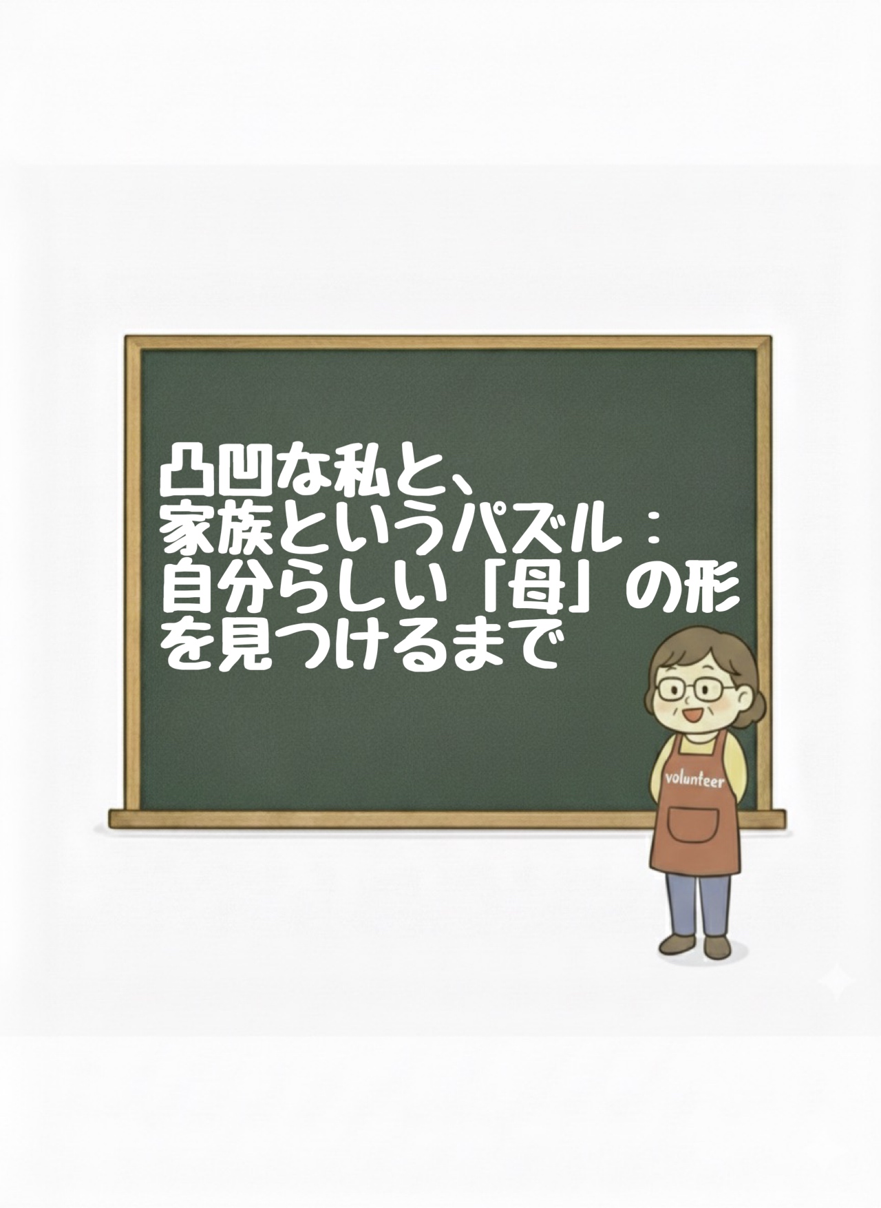 「理想の母親像」という型にはまることは諦めました。その代わり、夫や姑、そして過去の自分とも折り合いをつけながら、この家族というパズルのピースを繋ぎ止めていたい。そんな「凸凹な親」の在り方があってもいいのだと、今は静かに自分を肯定しています。