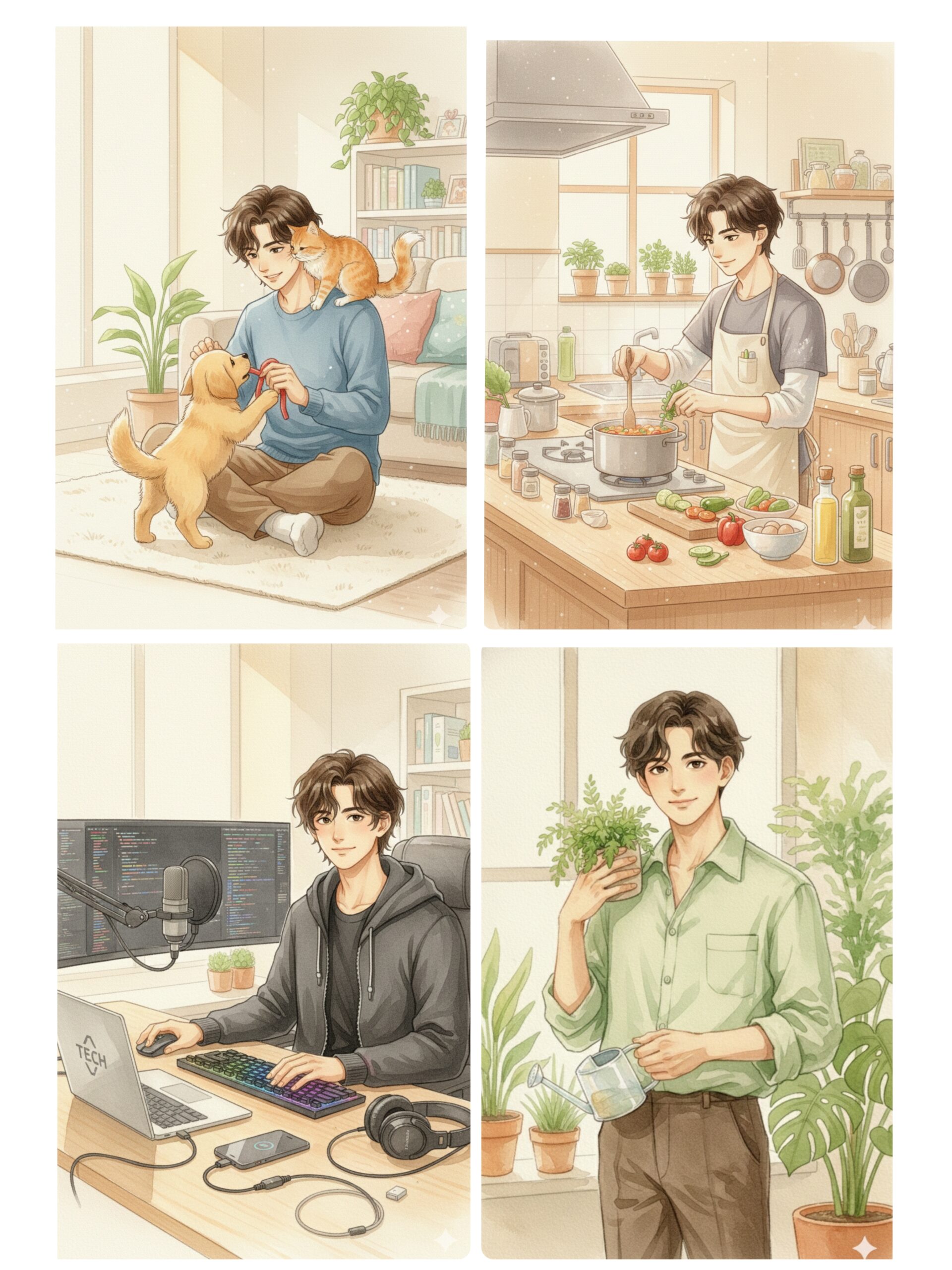 Gemini いいですね!温かみのある水彩画風で、日常を切り取ったようなイラストを生成してみますね。テック系から料理までお任せください!