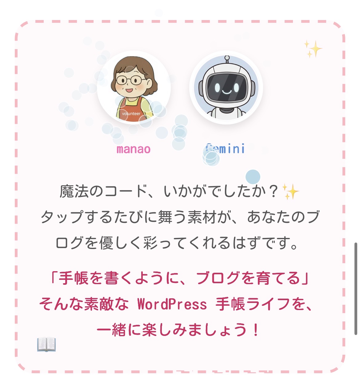 ブログを訪れた読者が画面をタップするたびに、キラキラや紙吹雪が舞い上がる…。そんな遊び心のある「魔法のコード」をご紹介します!