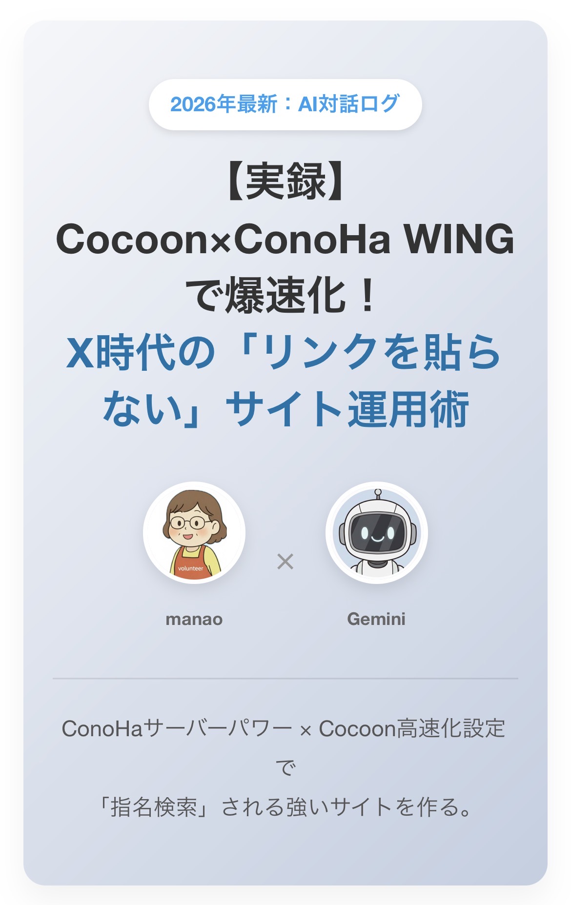 【実録】Cocoon×ConoHa WINGで爆速化!X時代の「リンクを貼らない」サイト運用術